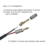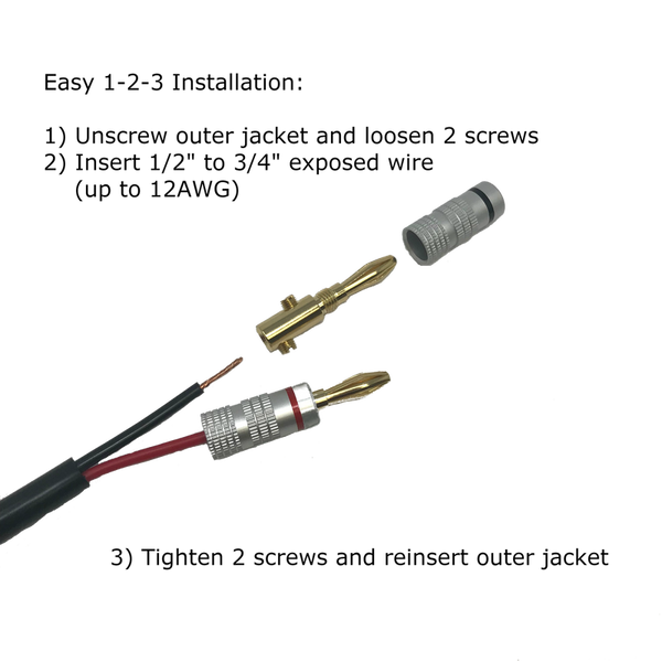 Premium speaker wire banana plug connectors for solid hassle-free installations. Perfect to use with our patio speakers and amplifier.